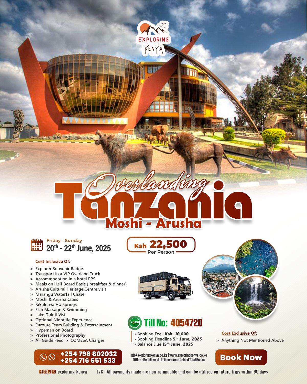 The journey begins at Nairobi CBD, where you be picked up for your 3-Day journey to Tanzania.